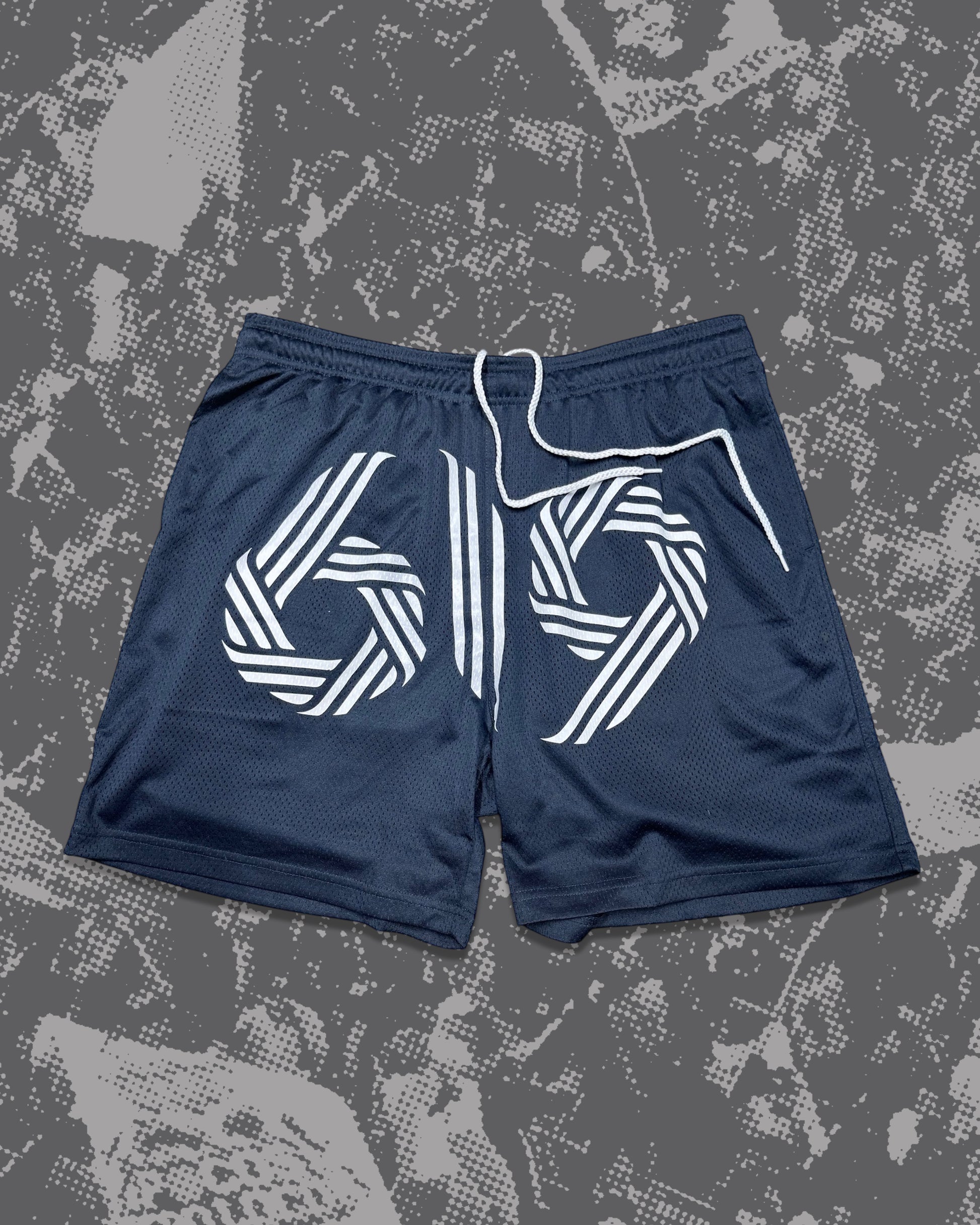 Navy Blue Shaka mesh gym shorts feature 2 front pockets, one back pocket and breathable mesh. They have a drawstring waistband to ensure a secure, adjustable fit, accented with white print.